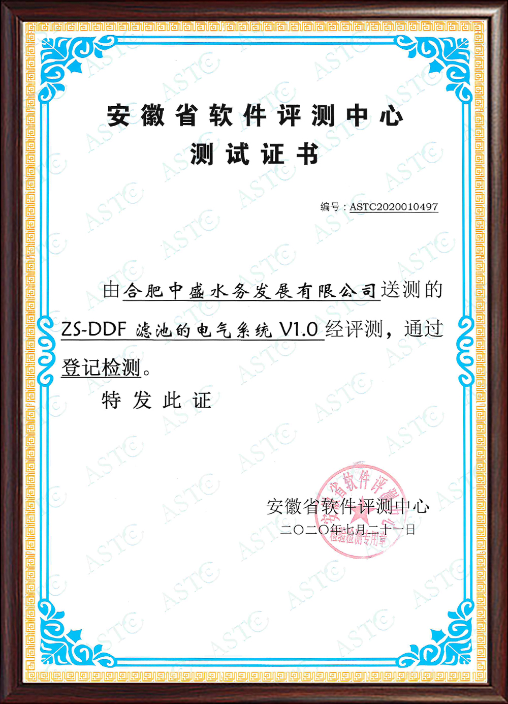 ZS-DDF滤池的电器系统V1.0-软件评测证书及报告