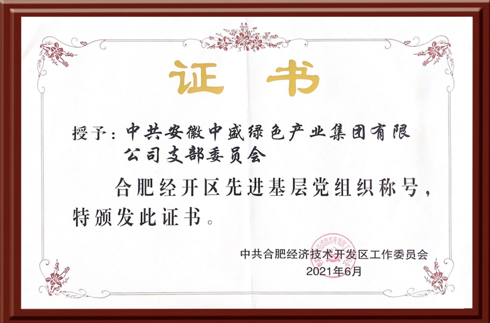 中盛集团党支部前身为中盛水务党支部,成立于2010年,2019年更名为中盛集团党支部。集团现有职工150人,党员30名,支部书记由董事长施海仁同志担任。集团高度重视党建工作,探索建立“123”特色党建模式,形成“党建带群建,群建服务党建,党群共建”长效工作机制,通过强化人才“选、育、用、留”,推动党建与企业发展同频共振。确定社会责任“双百计划”(“中盛百万善行计划”和“中盛百场公益活动”),扎实推动乡村振兴行动。深耕绿色科技行业,围绕专精特新领域,健全机制促进企业高质量发展。中盛党支部先后获评合肥经开区先进基层党组织、合肥市“双强六好”非公企业党组织等荣誉称号。