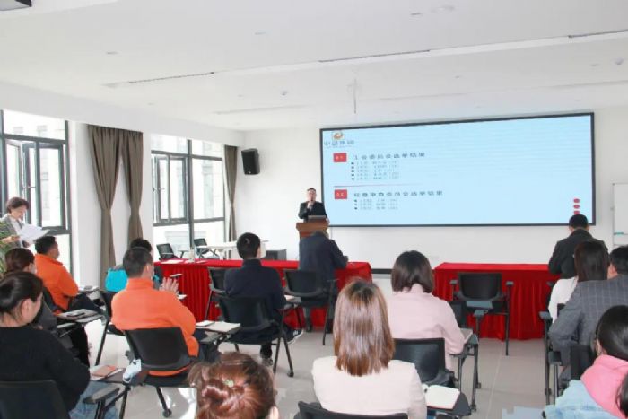 紧接着,主持人宣读了31名职工代表的选举结果。我们的职工代表同时也是工会会员代表,立即进行了工会委员会和经费审查委员会的成员选举,每位代表们经过深思熟虑,本着认真负责的态度,公平公正的原则,慎重的投下了自己宝贵的一票。在经过短暂的统计后,9:55分主持人正式宣读了工会委员会和经费审查委员会的选举结果,最终陈长友同志以最高票数当选工会委员会主席,其余四位委员分别是:王婷婷、王伟、朱易真、林佩兰;丁林同志以最高票数当选经费审查委员会主任,其余两位委员分别是杨骏和张勇。