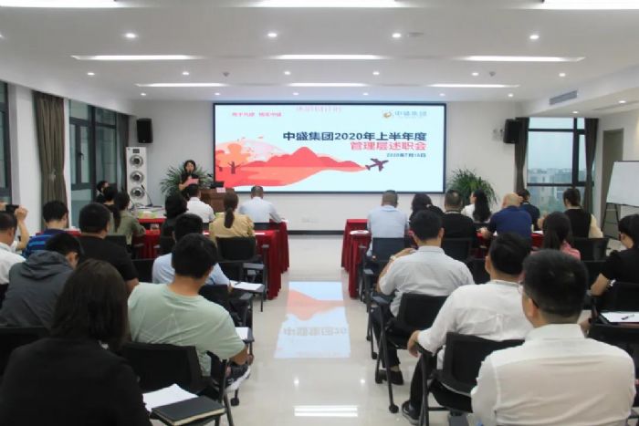 上午8时30分,中盛集团2020年年中述职会议正式开始,由各公司经理级及以上人员分别进行述职,述职人员分别从工作内容、工作成果、自我剖析、未来展望等多个方面、多维度进行阐述。