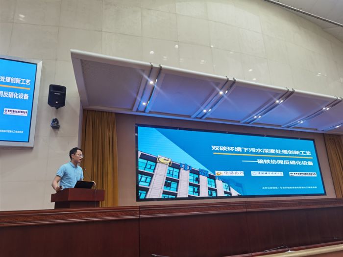 本次对接会由中盛集团副总裁刘苏文率队组织参加,营销中心总监兼副总工程师李驰骋代表公司进行现场推介——中盛水务硫铁自养反硝化滤池新工艺。作为中盛水务2021年参与的省重大专项课题研发成果,凭借其无需投加药剂、反洗频率降低、运行成本更低、可适用多种滤池构型、深度脱氮效果稳定以及兼有除磷效果等特点,得到了政府部门和业主单位的广泛认可。今后,该项新工艺将会在全市污水厂进行推广和应用。