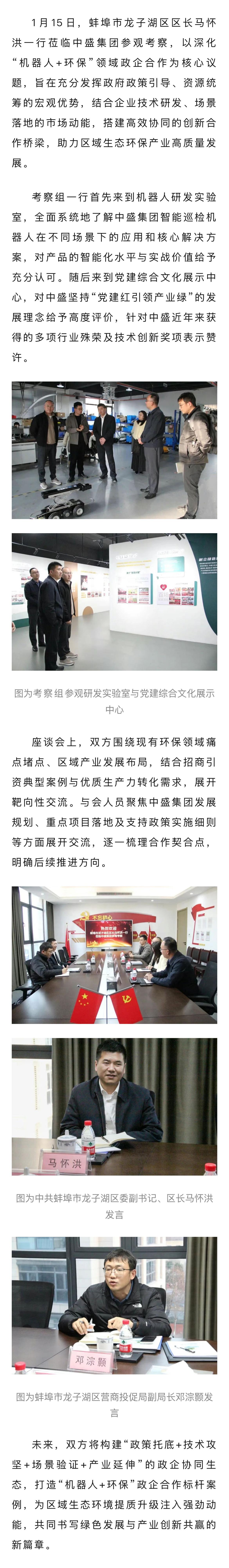 蚌埠市龙子湖区区长马怀洪一行莅临中盛集团参观考察 共商“机器人+环保”政企协同新生态