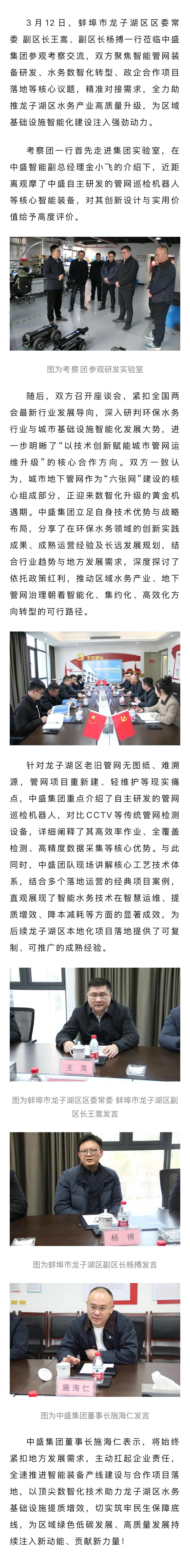 蚌埠市龙子湖区区委常委 副区长王嵩、副区长杨搏一行莅临中盛集团考察调研,共绘水务数智化新蓝图